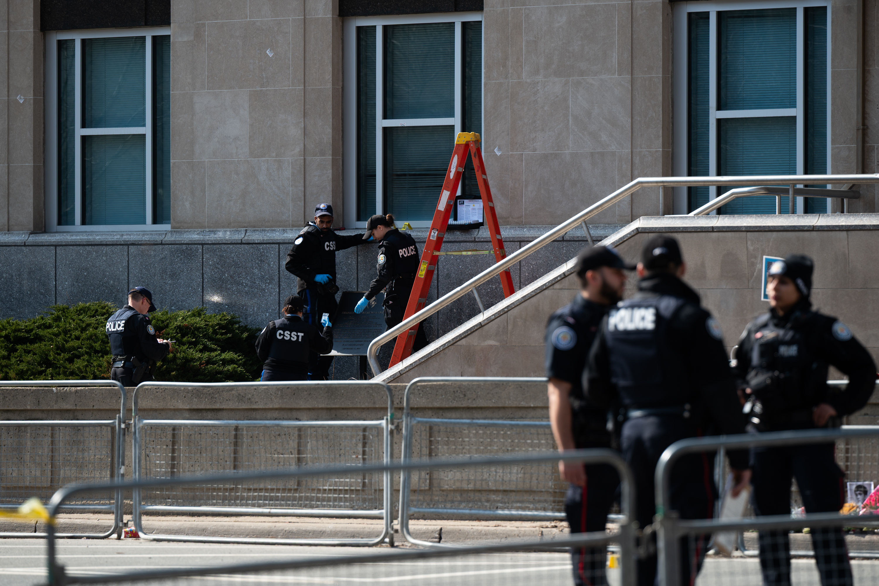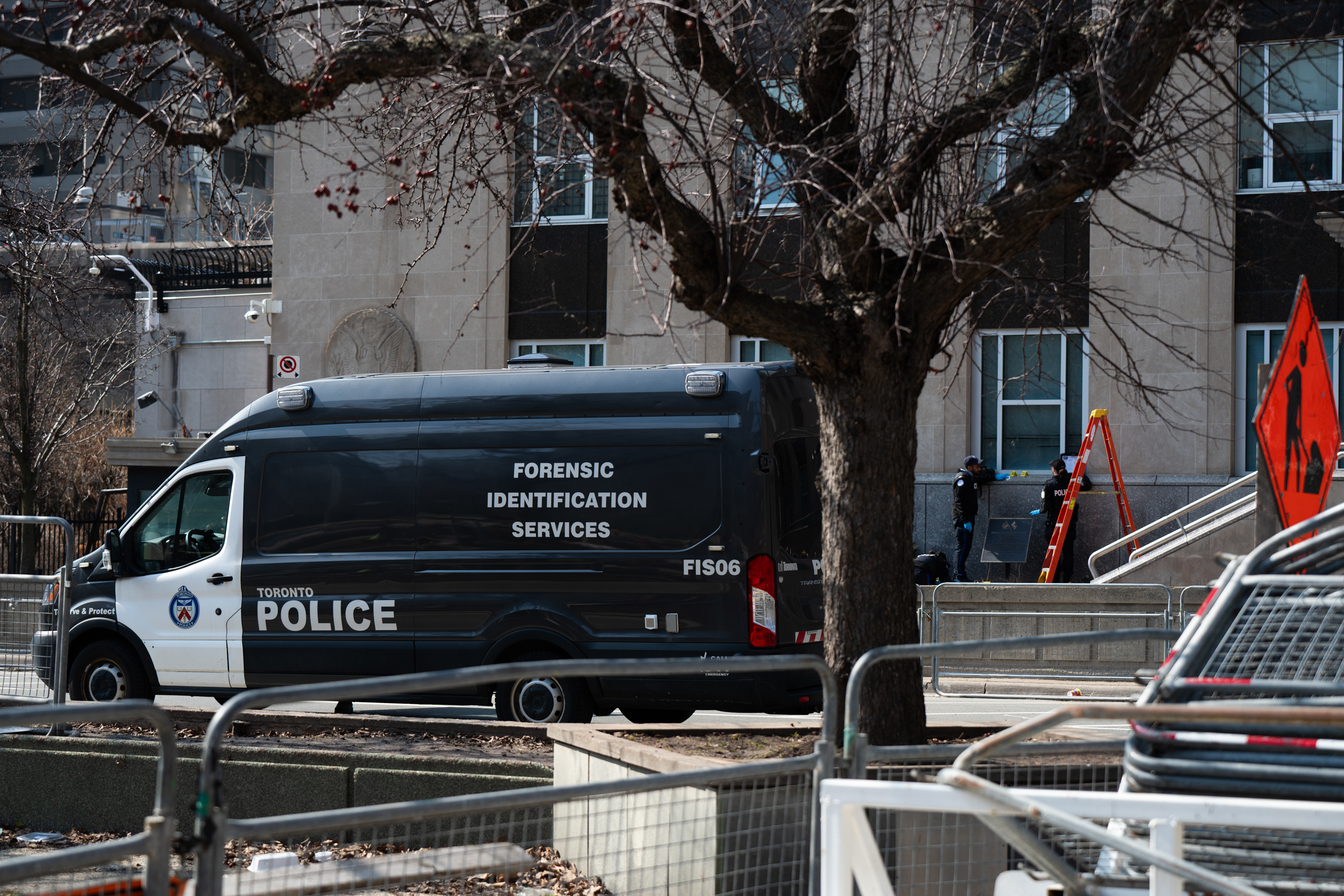 3月10日,警察在加拿大多伦多的美国驻多伦多总领馆外勘察。新华社发(李海涛摄)
